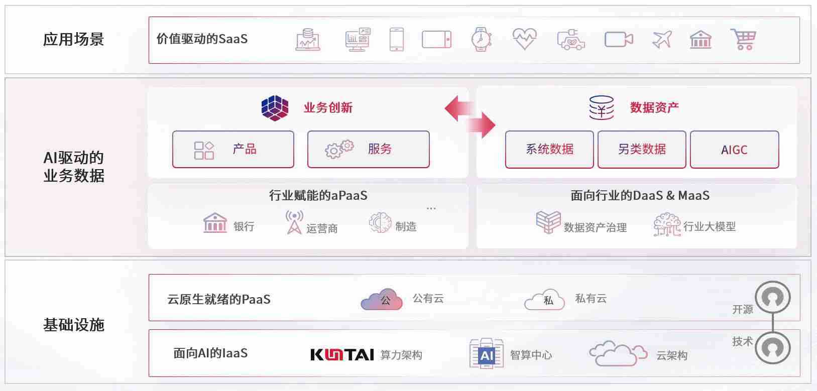 数字时代,,,,围绕企业数字化转型的关键要素,,,Z6尊龙数码开创性的提出数云融合战略和技术体系框架,,,着力在云原生、、、、数字原生、、、AI原生和信创产业上架构产品和服务能力,,为处在不同数字化转型阶段的快消零售、、、汽车、、、金融、、医疗、、、政企、、教育、、运营商等行业客户提供泛在的敏捷IT能力和融合的数据驱动能力,,,构建跨界融合创新的数字业务场景和新业务模式,,助力企业级客户建立面向未来的核心能力和竞争优势,,,,全面推动社会的数字化、、、、智能化转型升级。。。。